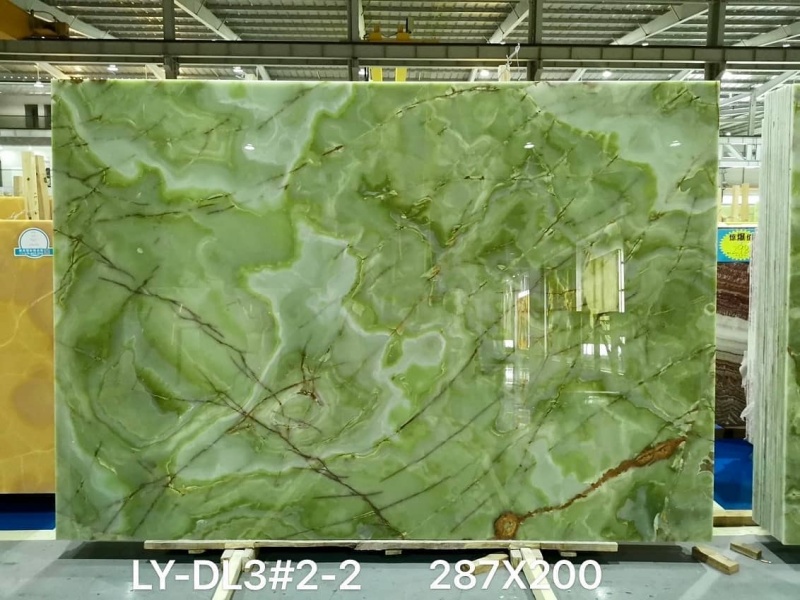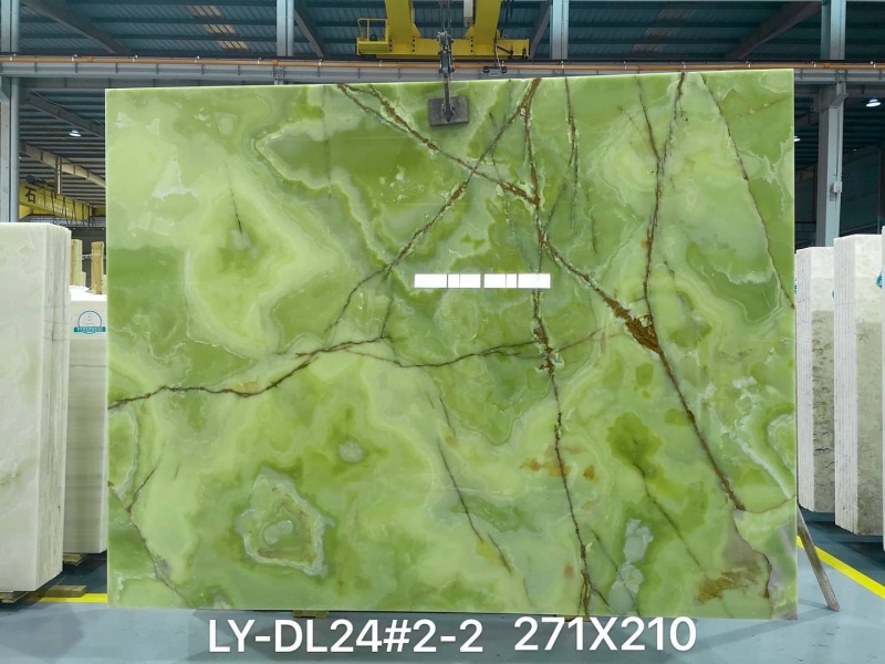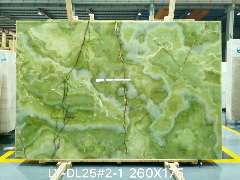 Enhance your project with Green Lotus East's Onyx – a translucent, green natural stone perfect for backlit walls, luxury countertops, and decorative features. Request a quote today!